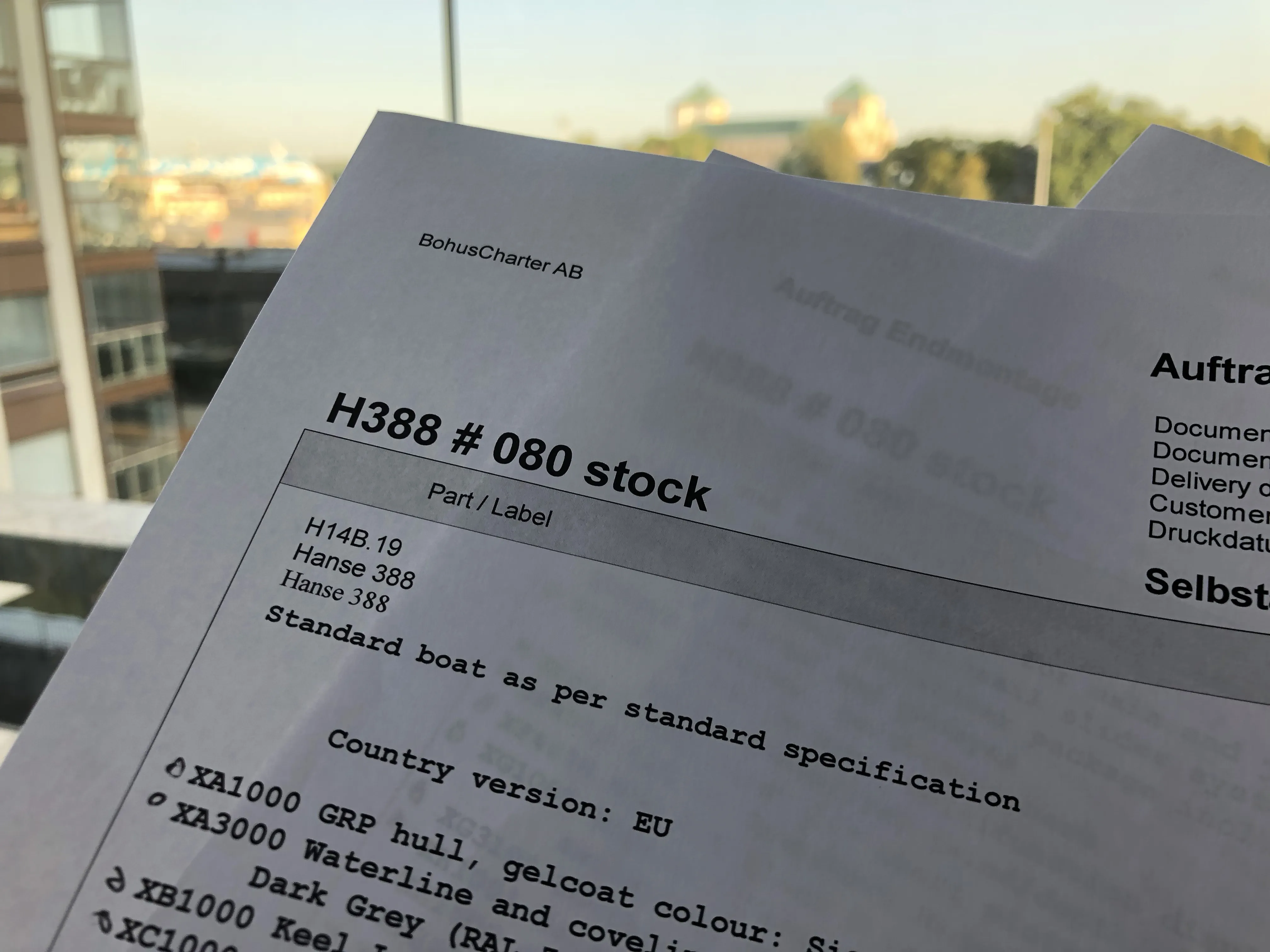 - The “Auftrag Endmontage” was missing some key components that we actually had ordered: a VHF (which isn’t used so much over here, but still a must-have for safety) and the autopilot. (I suspect I know why they are missing but dearly hope that this will be easily resolved.)