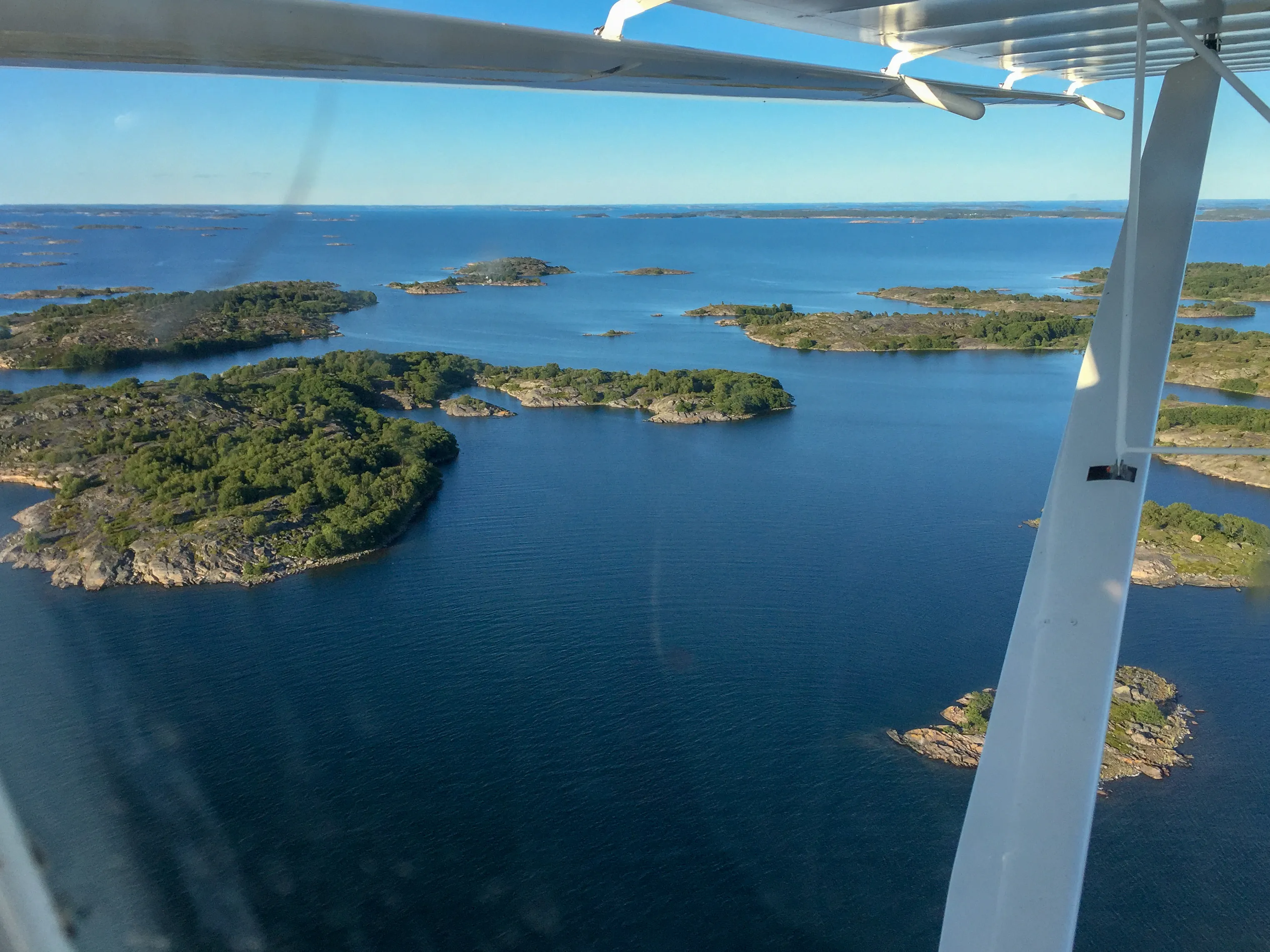 There he is! Hello, Ben! Thanks for inviting us! (On the bottom of the picture you can see another common feature of Finland, the IKEA bag. They make excellent bags and we use them for almost everything :)) Now let’s go flying! Ben flies his own ultralight airplane and this is what the archipelago looks like from some meters above the ground. I don’t know exactly where and when this photo was taken, but the further you go from mainland, the more barren it gets with fewer trees and more rocks.