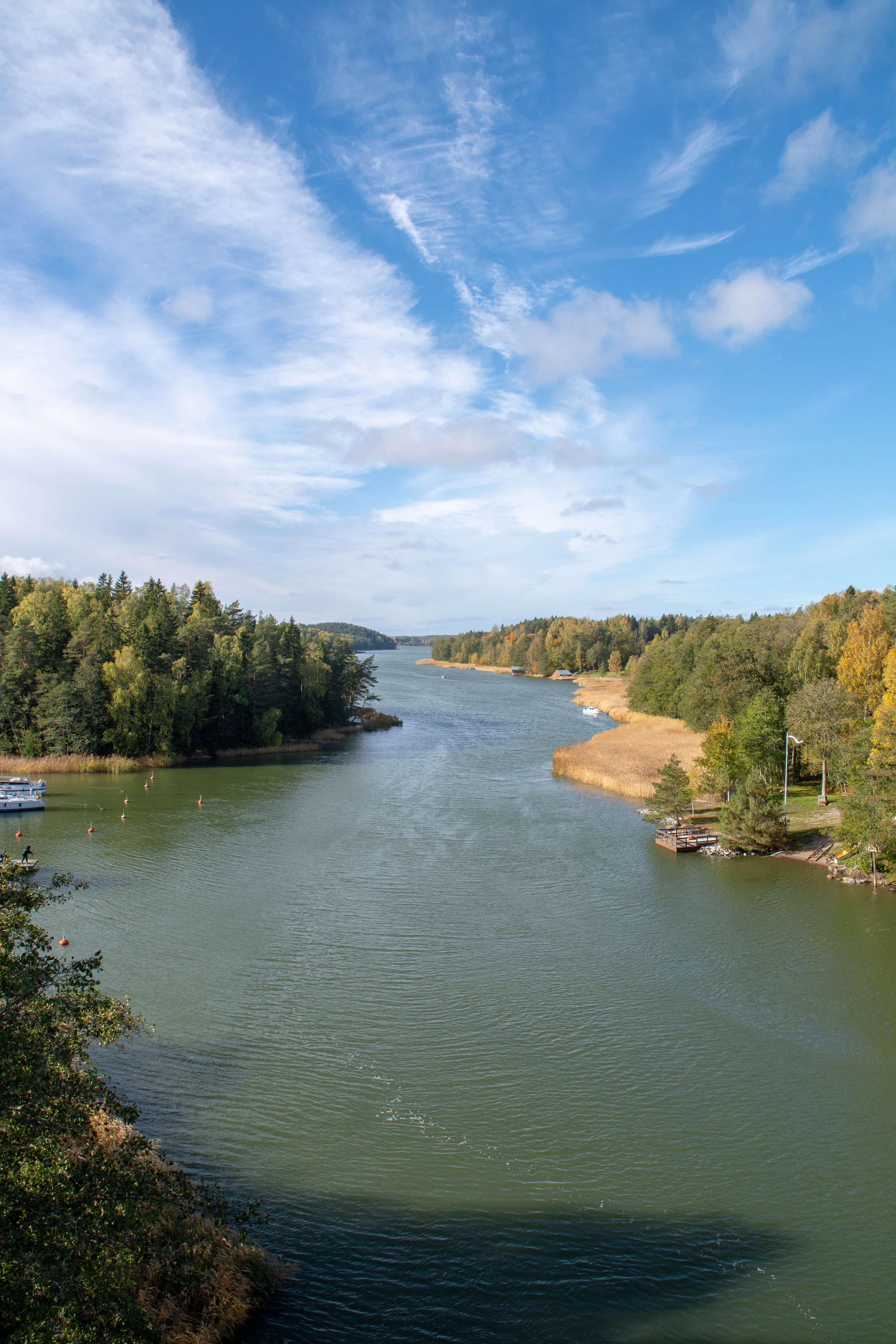 Next stop, a channel called Sattmark at chart coordinates 60°15’06.5″N 22°14’21.9″E. Zoomed in. We’re heading west and the marked route is for boats with max draft of 2.1m/6.9ft, so we’re fine. Keep the greens on the left and reds on the right! And, again, here’s what it really looks like! Some boats parked to the left and the jetty and pennant of a summer home to the right. (And no, I’m not sailing here, just standing on a bridge taking a photo, but there’s nothing wrong with imagining it, right? :))
