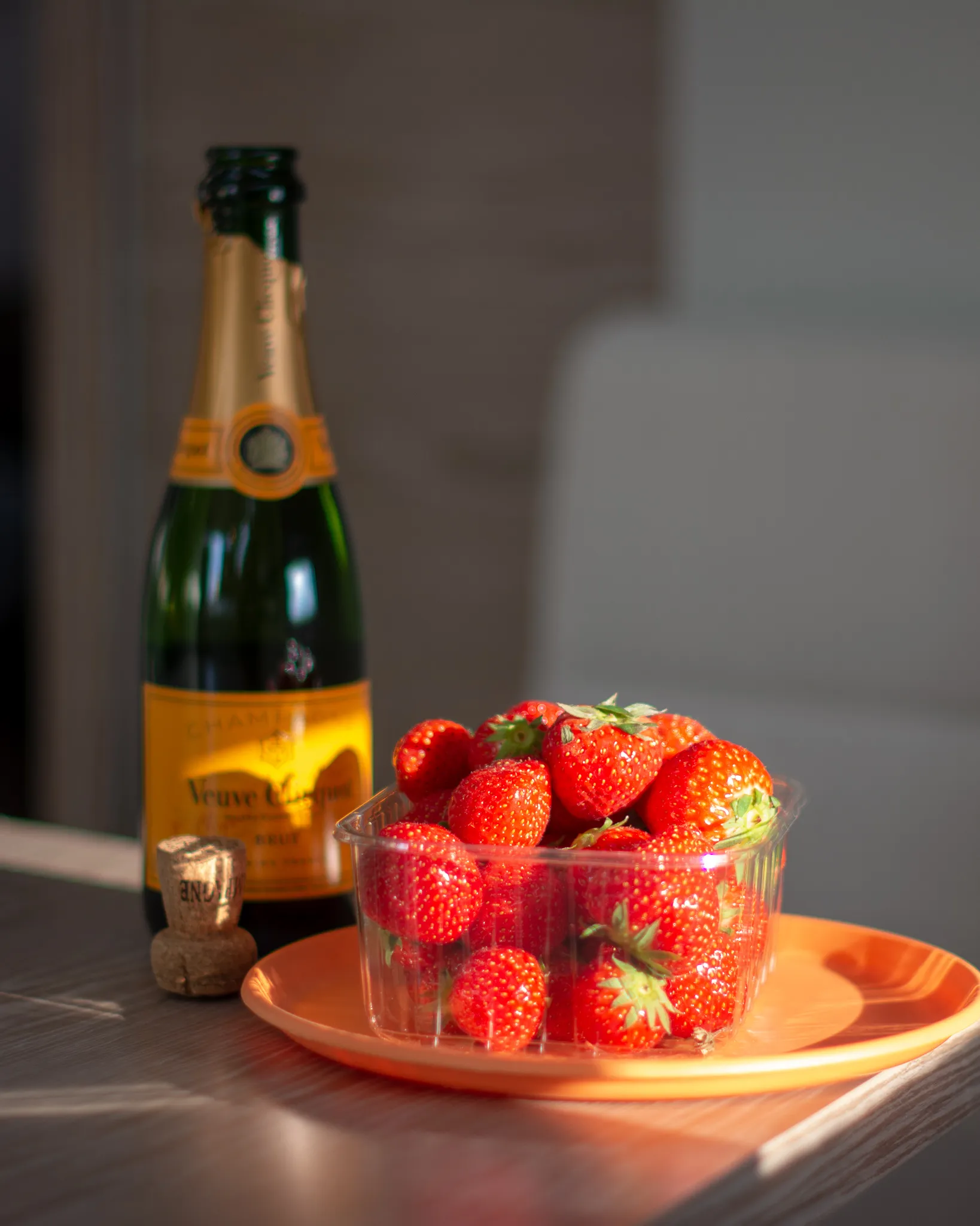 A while ago Torbjörn (the dealer’s representative) left and now I’m sitting here alone in our boat. I’m drinking some champagne and eating strawberries while writing this. A moment ago I poured a bit of the champagne outside on the bow and said (quite quietly so that only the two of us could hear): “Your name is now Charlotte.”
