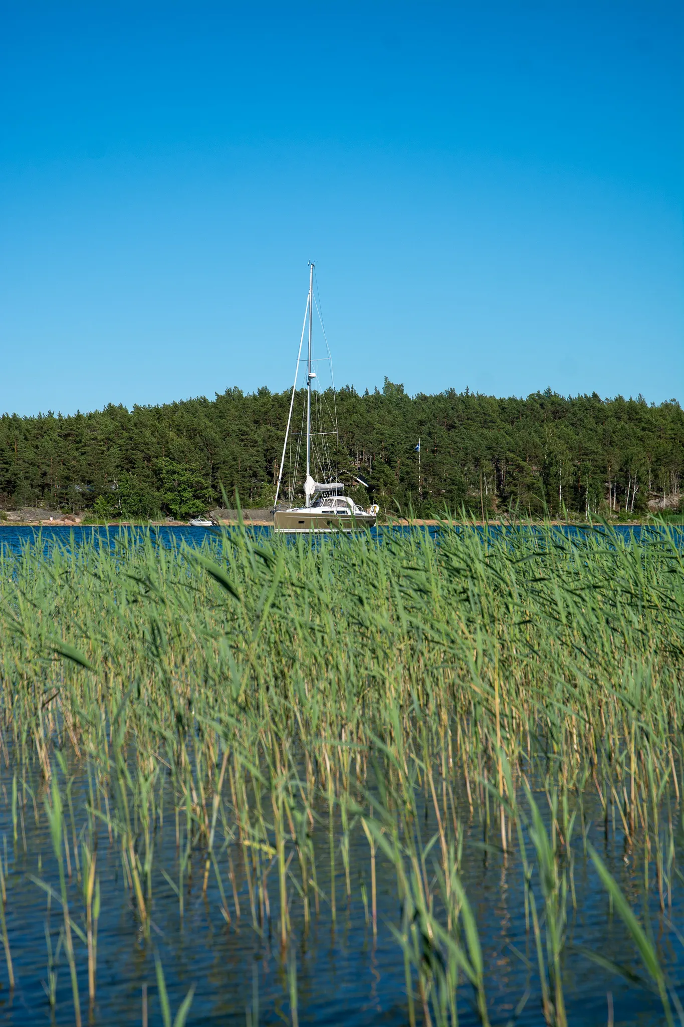 We were anchored in a small bay on the north shore of Nagu. Around us a few summer cottages, some gray rocks rising out of the sea, an old deteriorating boatshed, four-meter deep water and a healthy amount of reeds. It really was quite nice and peaceful.