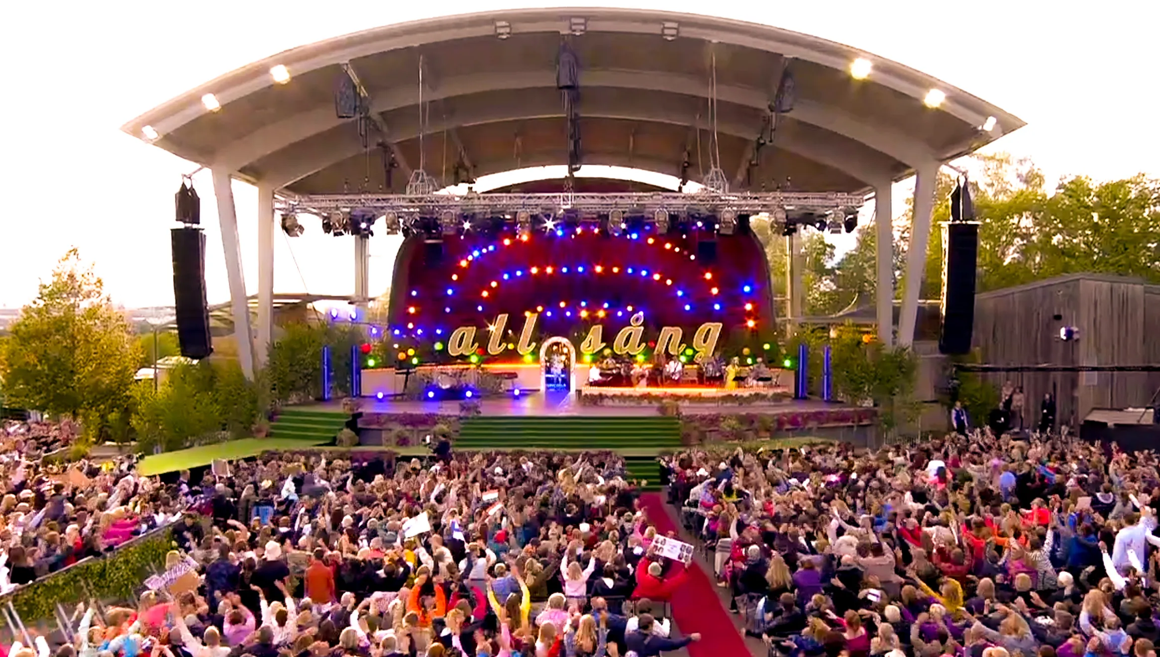 Allsång på Skansen (Sing-along at Skansen) is a legendary Swedish live music show that has been held at a place called Skansen (very close to our marina) every summer Tuesday since 1935 — that’s over eighty years! They broadcast it live on television (nowadays over in Finland as well), and there are usually thousands of people attending.