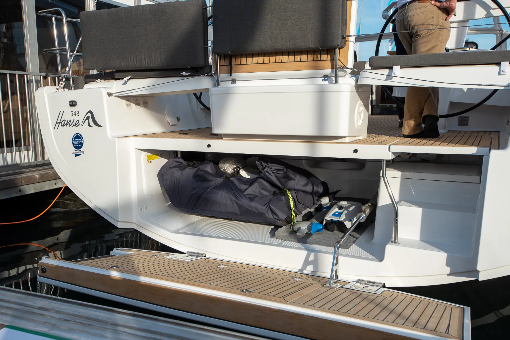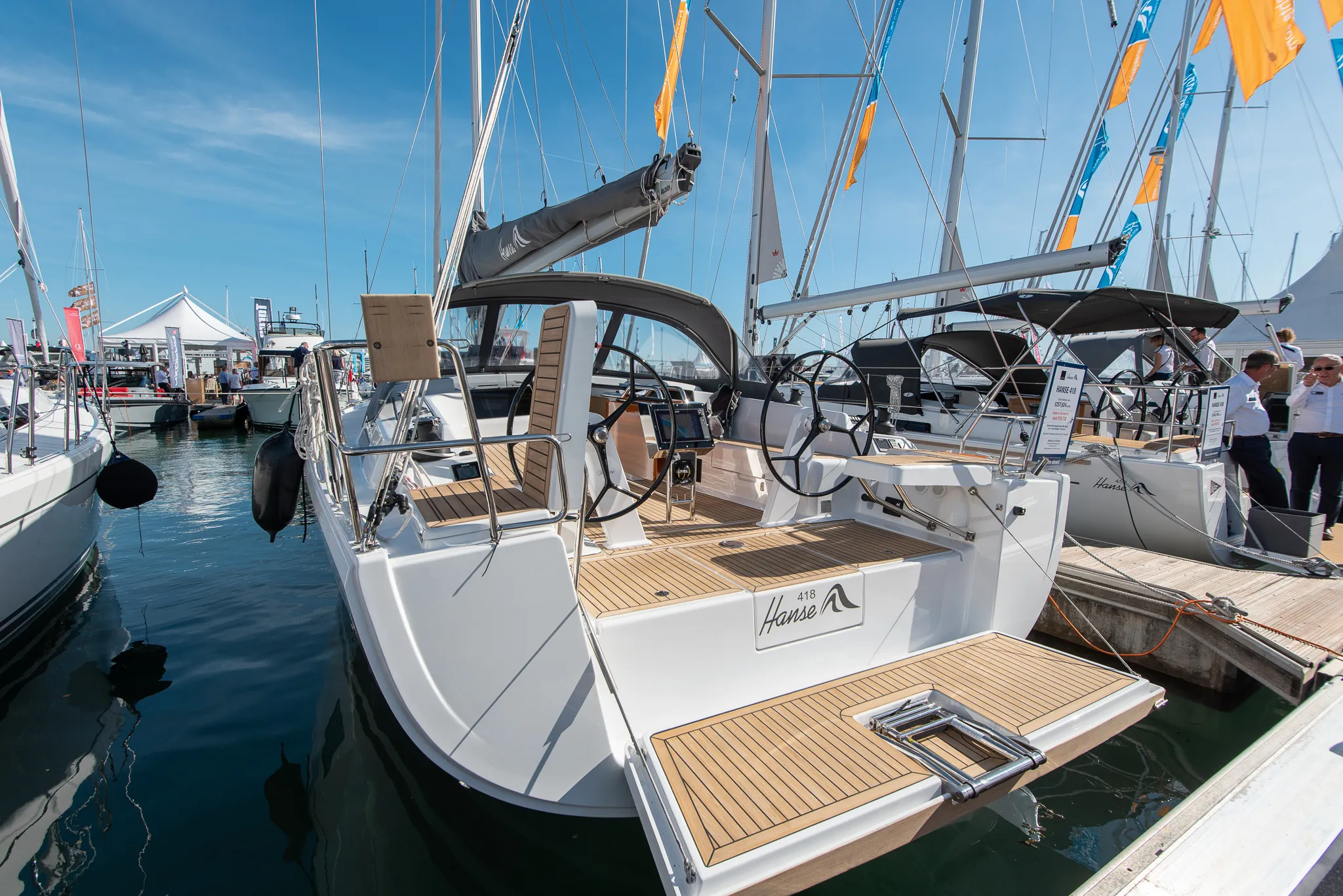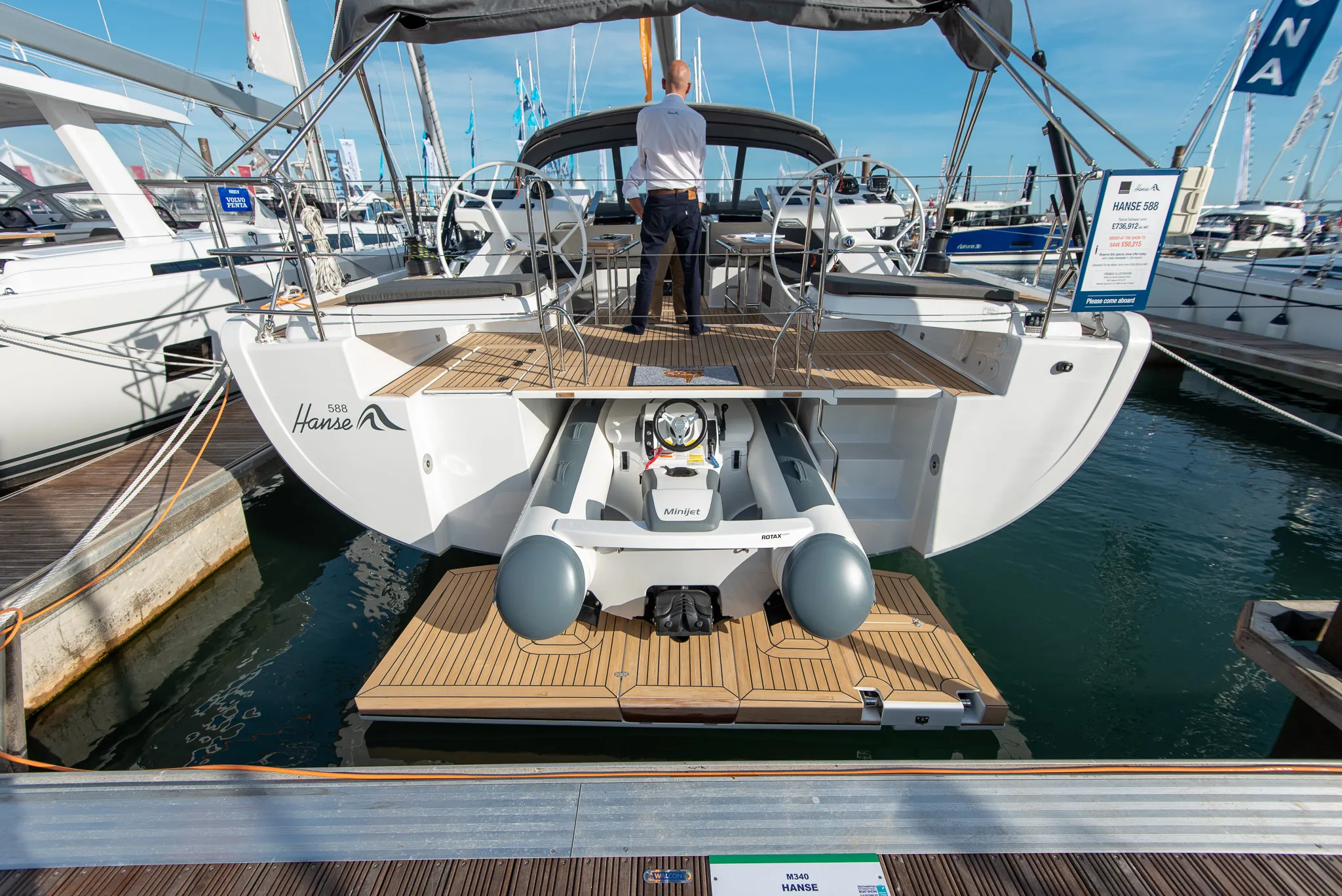 “Oh good then,” he said. “And you should stop here and not go further,” he added, and pointed towards the next yacht in line. It was a Hanse 588, the biggest and most expensive Hanse in the show.