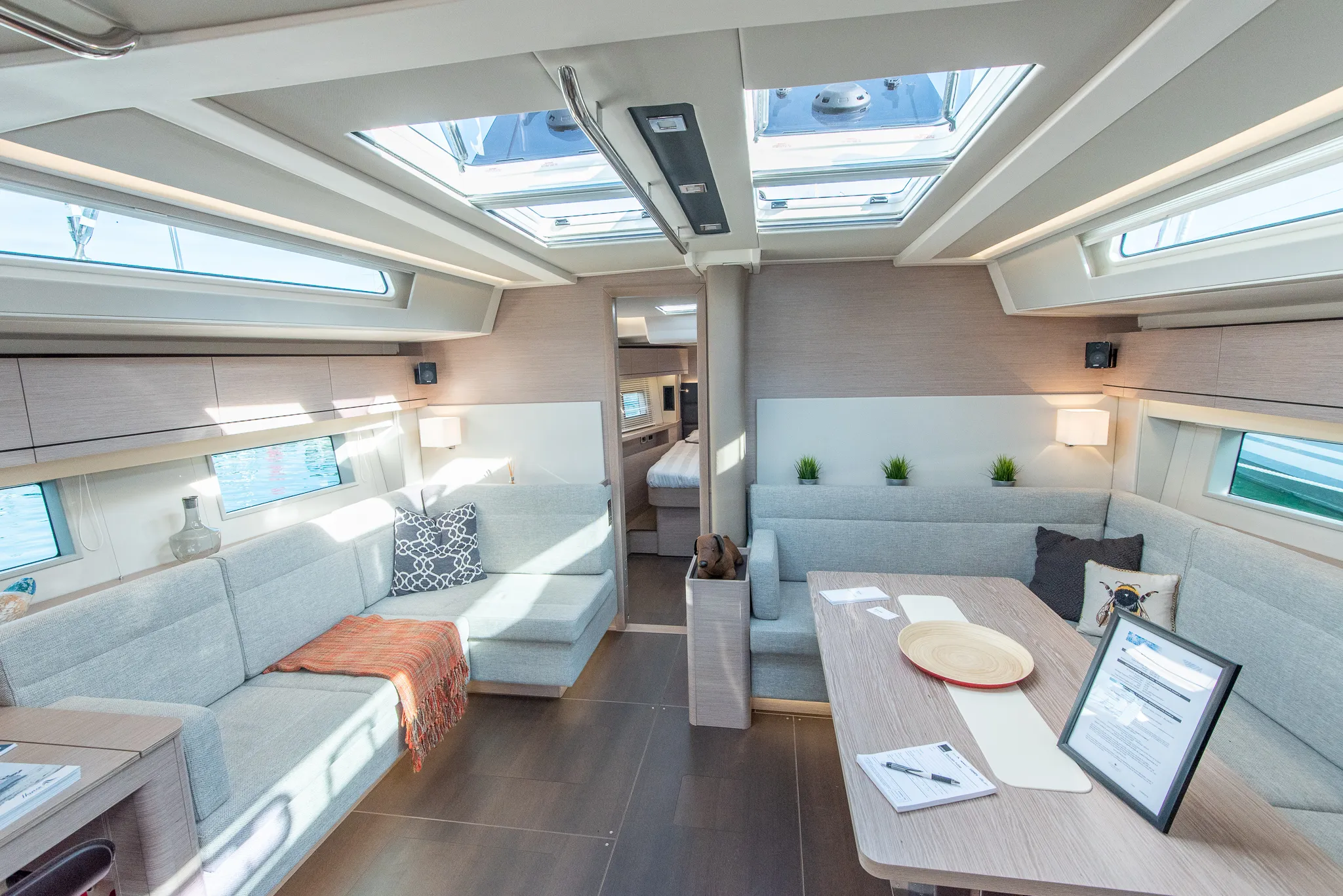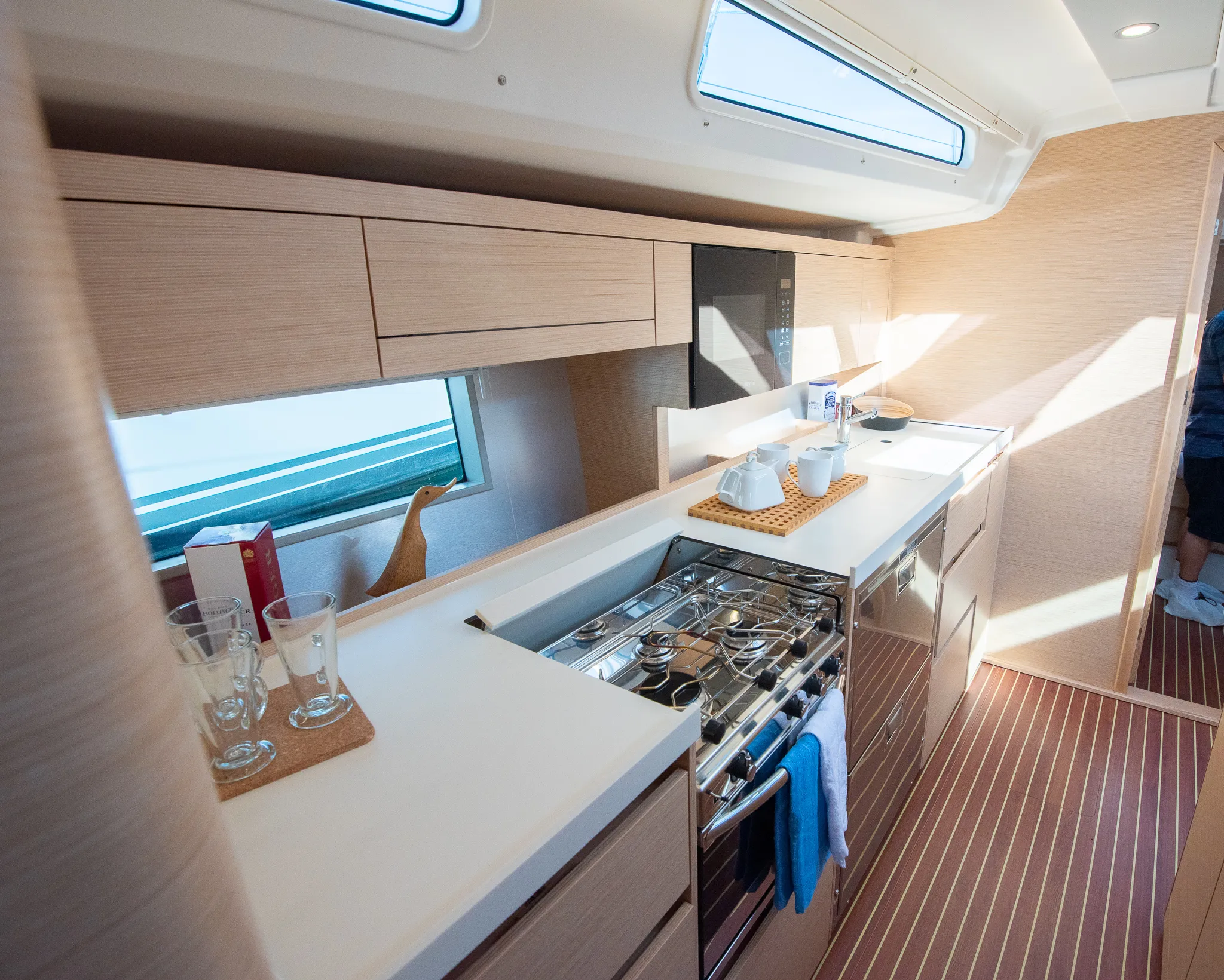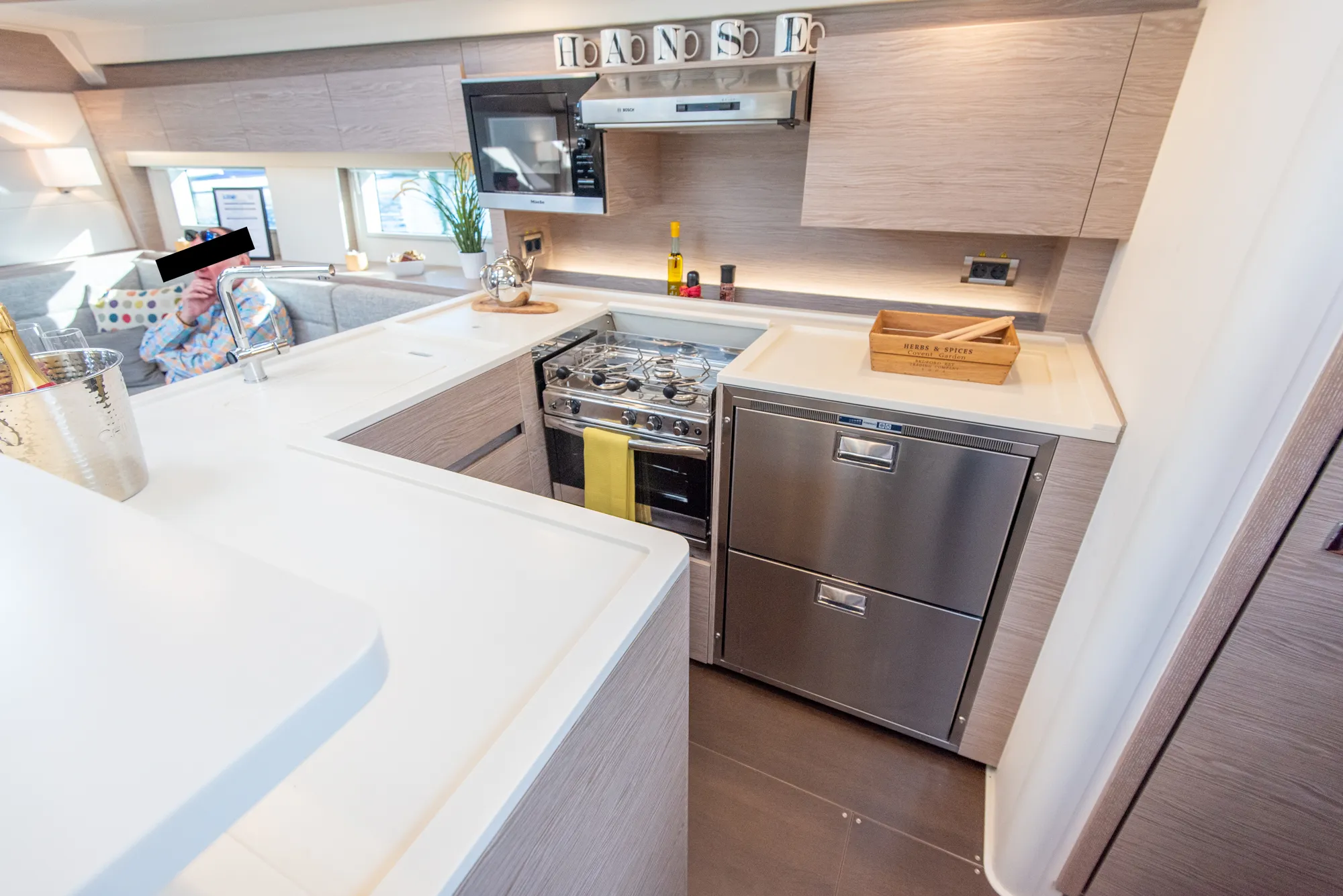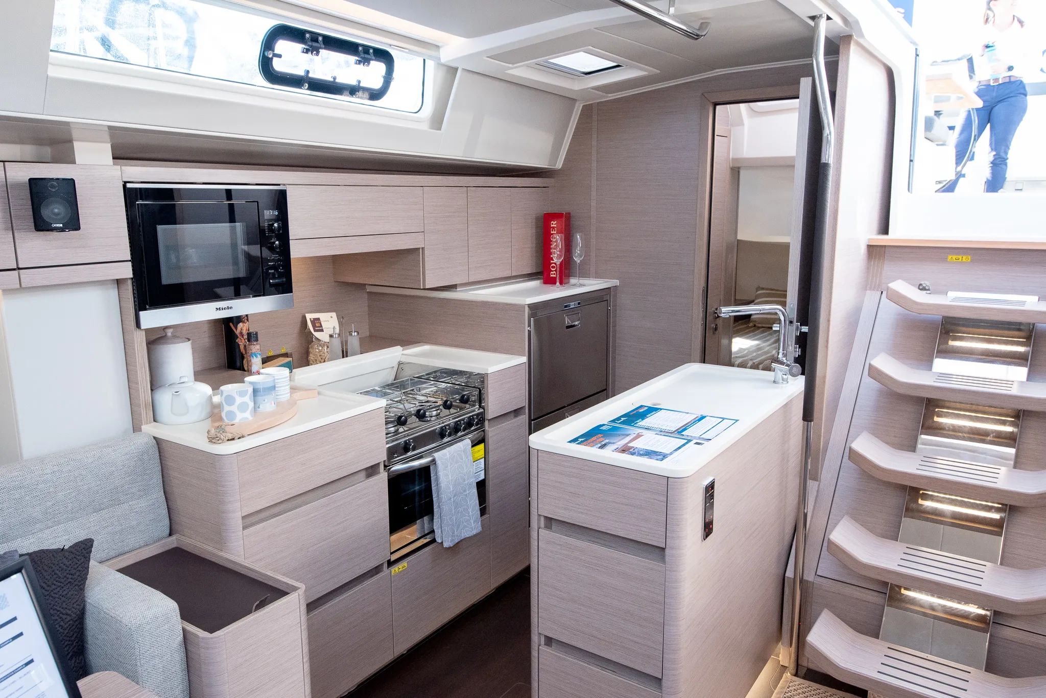The 508 is the first model with a long model galley on the port side. It’s quite cool and it certainly transforms the whole lounge/saloon area.