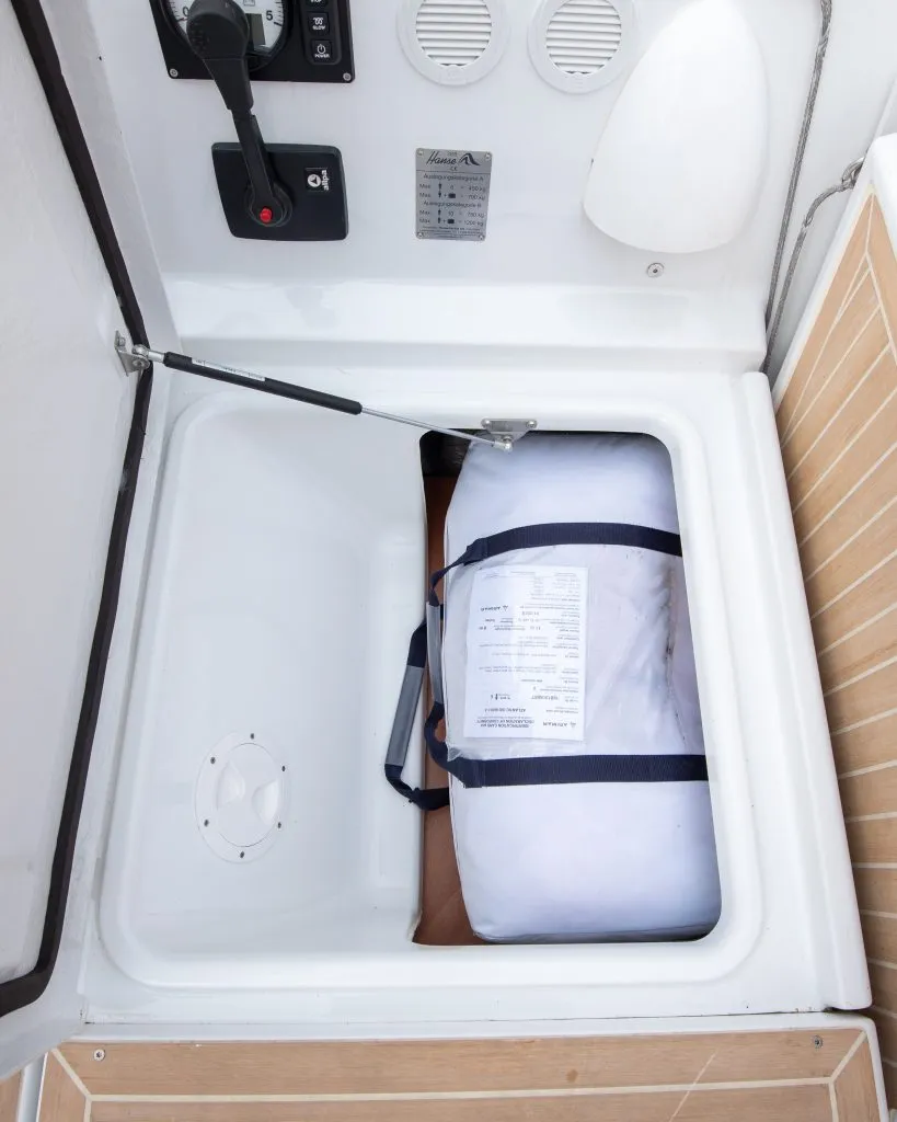 Two stern lockers, one cockpit locker, a bow locker and two opening aft benches.
