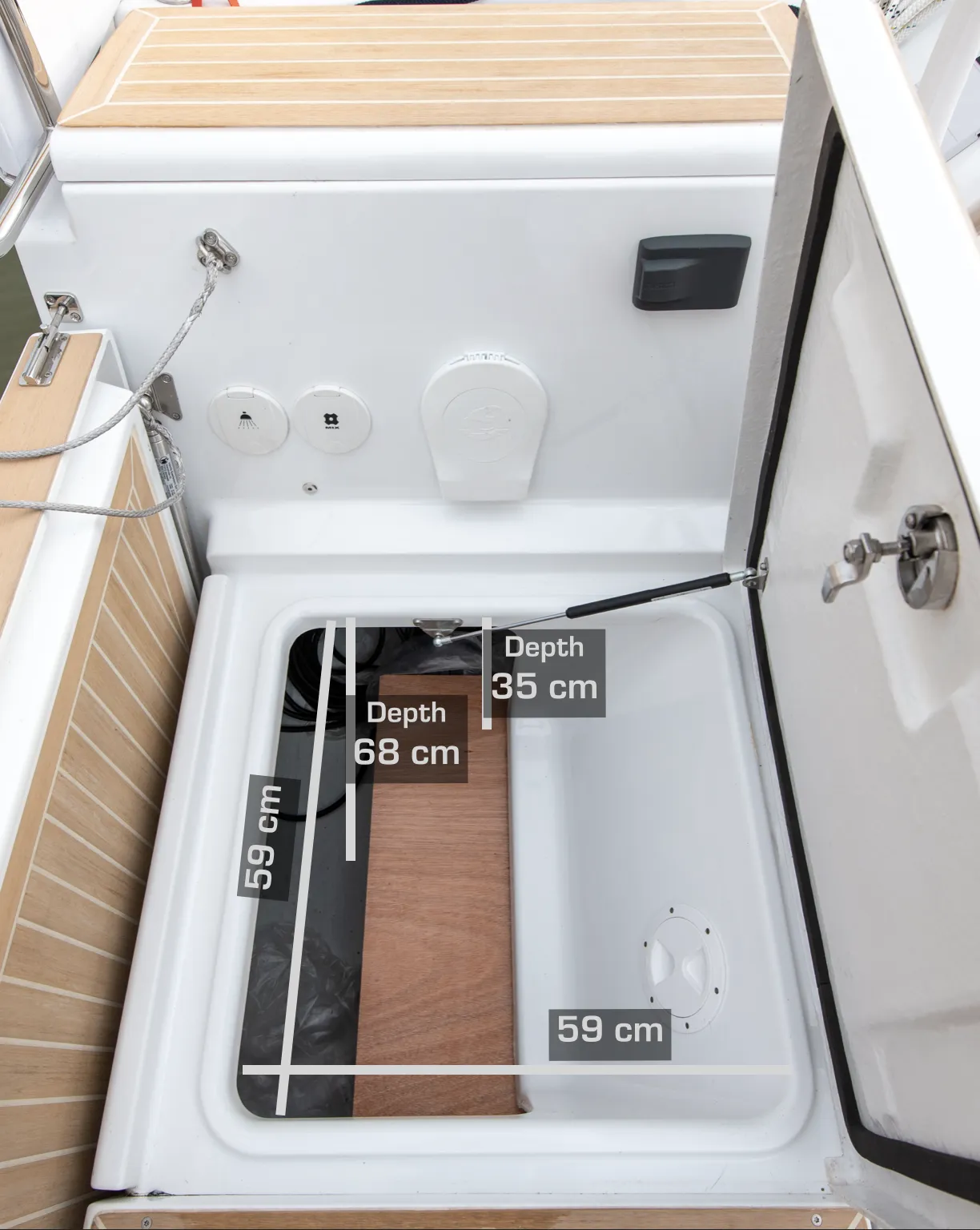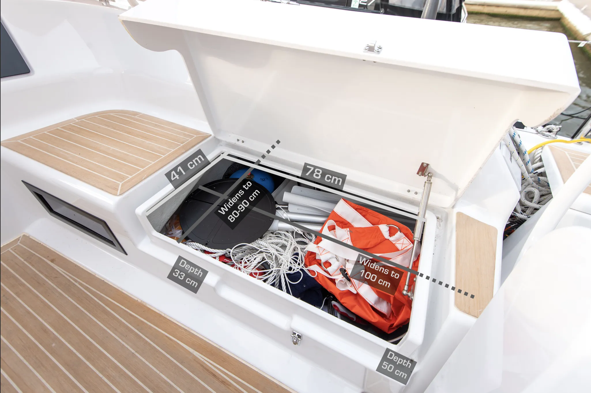 Once we learned how to fit all the fenders into a single aft locker, we were fine with the amount of storage space. The cockpit bench locker is quite big, so all the “small stuff” fits nicely there.