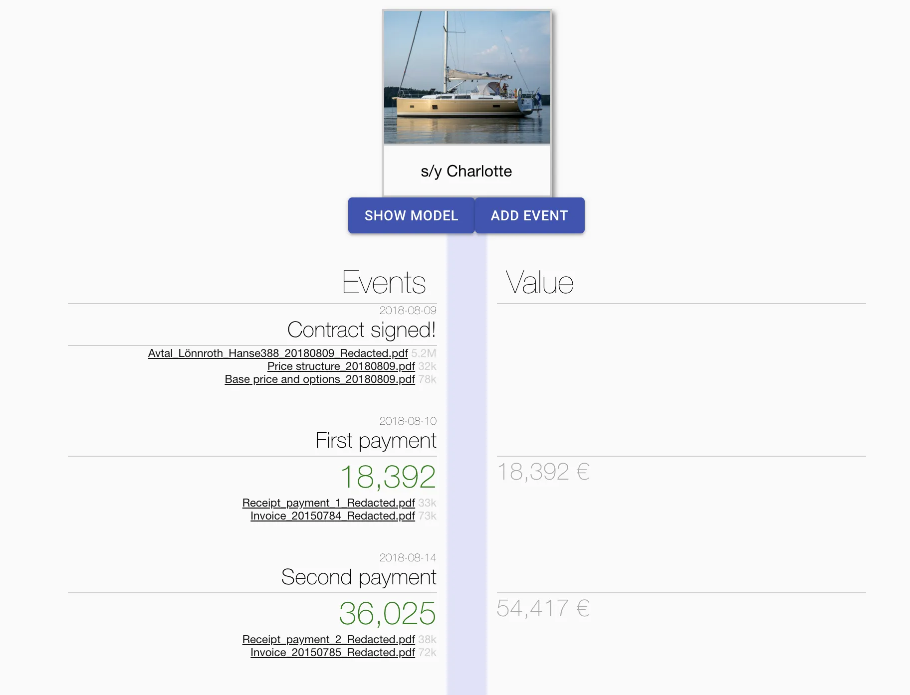 - Investment in boat, options, extras (including vinyl wrapped colour) and other long lasting equipment: 235,328 €. Estimated depreciation costs for the investment (today): 16,437 €.