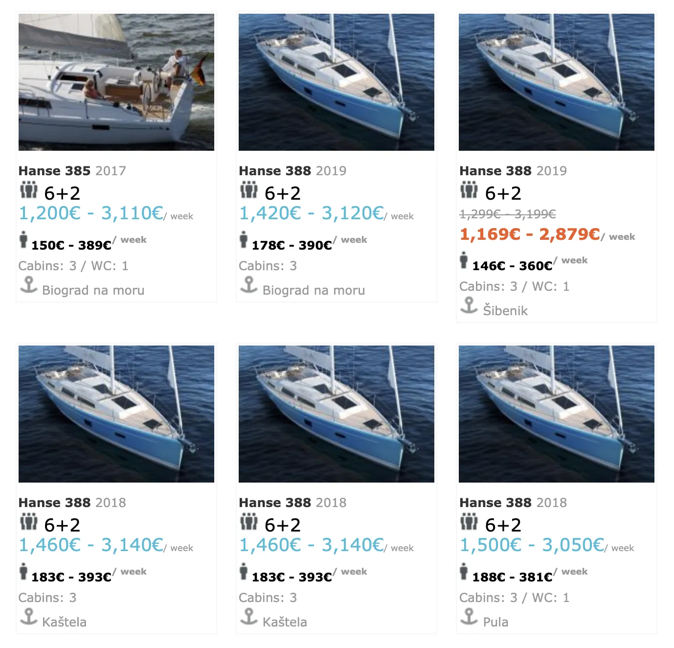 | Hanse 388 in Croatia | (1,579 €) | 3,855 € |