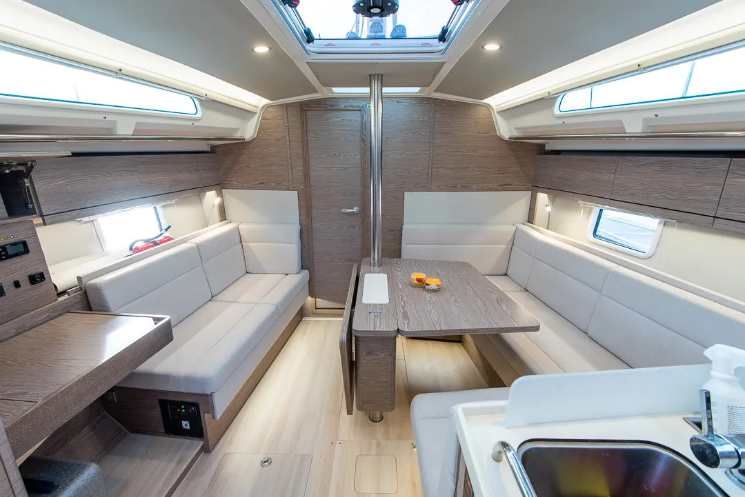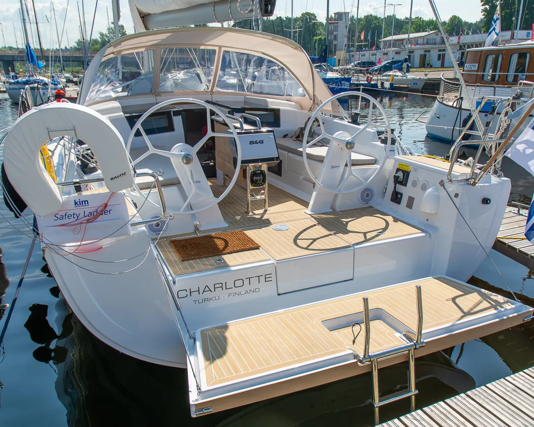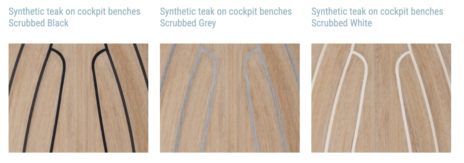 The upgrade from real teak to synthetic teak is just 490β¬ (for cockpit floor, benches, helmsperson’s seats, bathing platform). If you want to cover the whole deck in (synthetic) teak, it’s obviously quite a bit more π