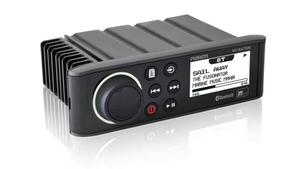 The standard boat doesn’t have a media player. The base entertainment package, including speakers inside and in the cockpit, is 1,560β¬. The CD player version upgrade is an added 490β¬ to that.