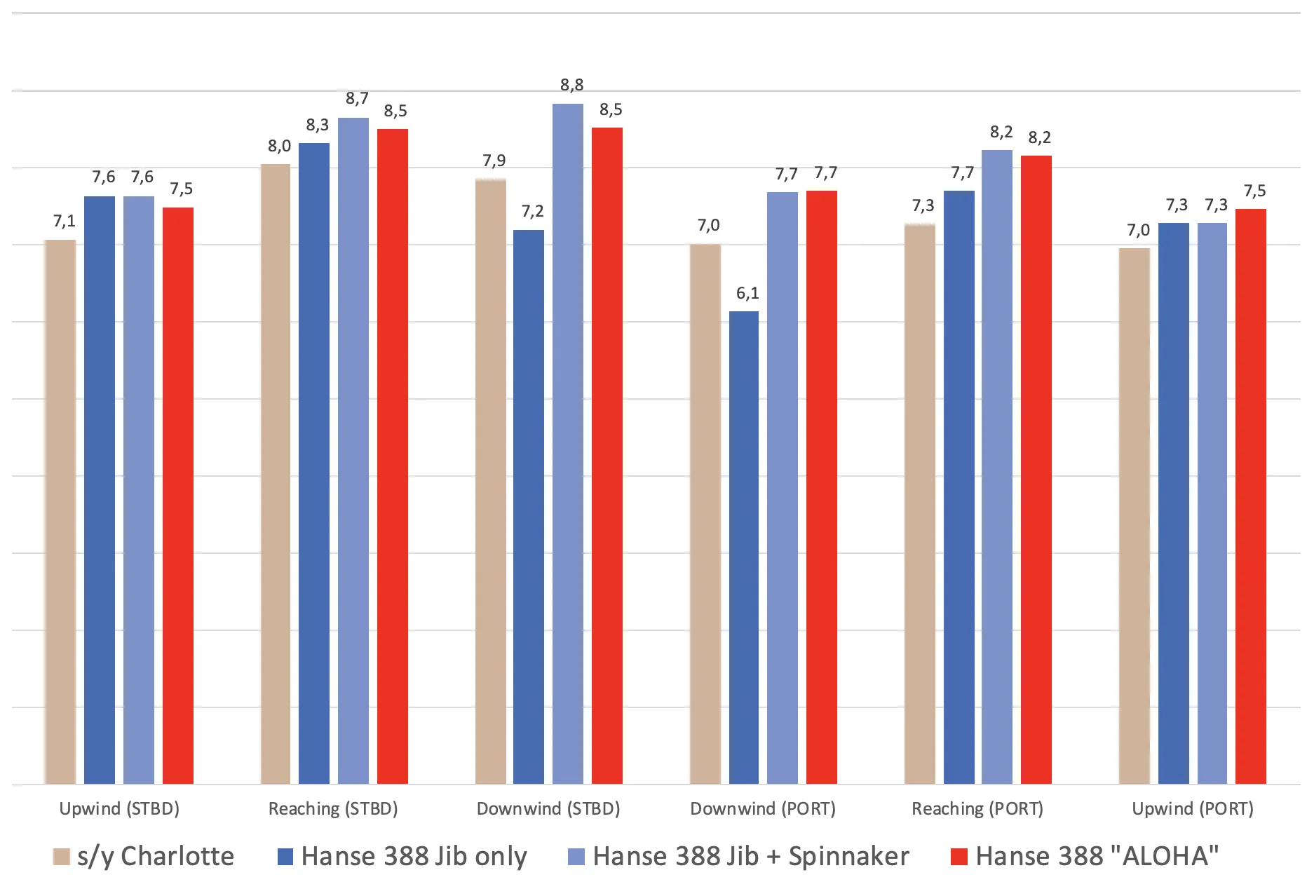 - Updated performance data from early 2020 over here in this post: Hanse 388 Performance 2.0.