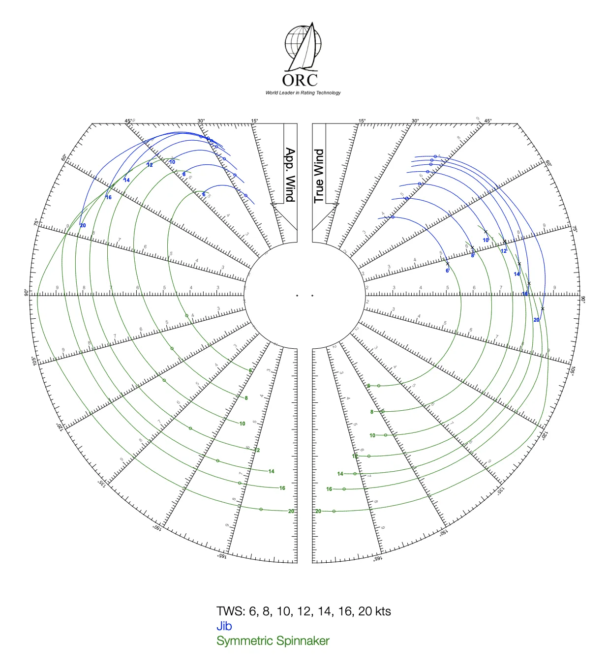 Compared to the jib + spinnaker polars, we did the same upwind, but about 90 – 91% of the reaching and downwind speeds.
