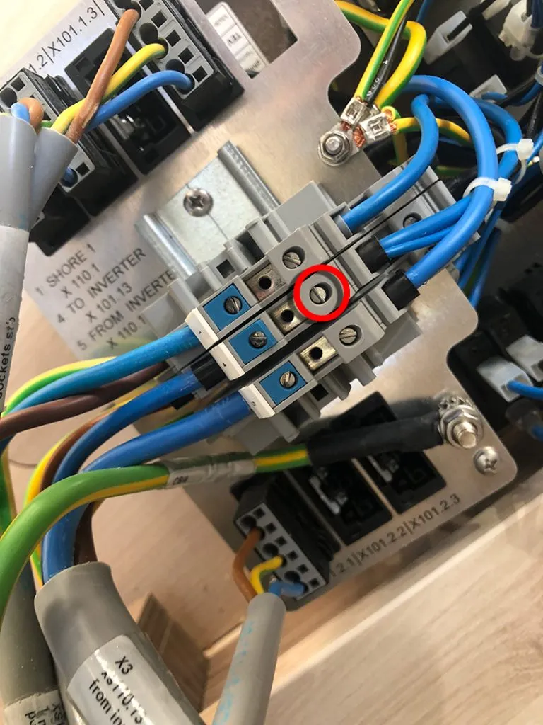 We unplugged the shore power and he went to work checking all connections, one by one. The fourth one he checked was the one. The screw holding the wire tight was clearly loose, almost like it hadn’t been really tightened at all.