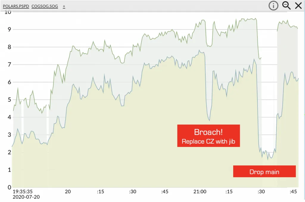 During the sail back, I got to use the crossover sail over good angles, and here is the data from that.