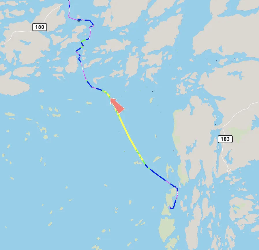 First a picture of the sailed track. A bit before the red arrow I out from the lee of the islands and to some more open water. The whole route with all the data can be viewed by clicking on the image or by clicking here.