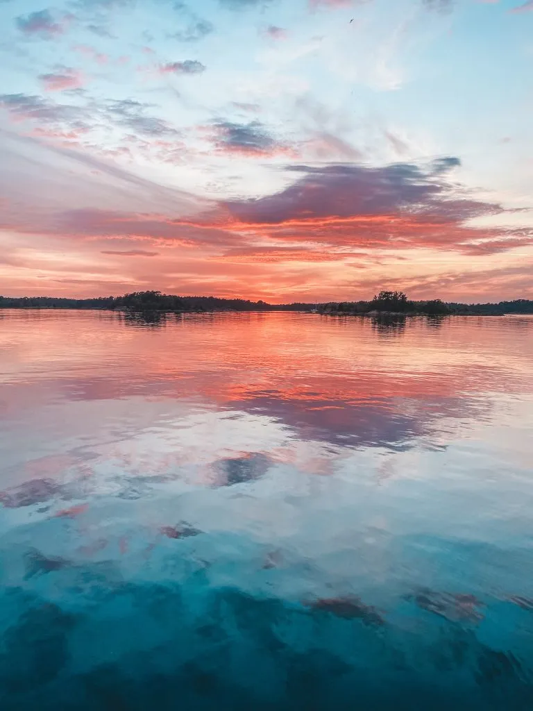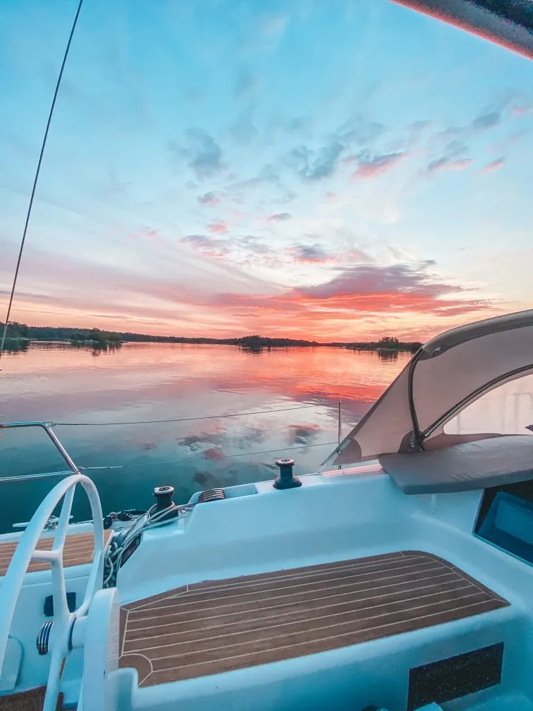 A bit later in the evening, we arrived at what seemed like a really cozy and beautiful place. There was one other boat there, and an SXK buoy (which one cannot use without joining their club), but there was just enough room for us to squeeze in as well.