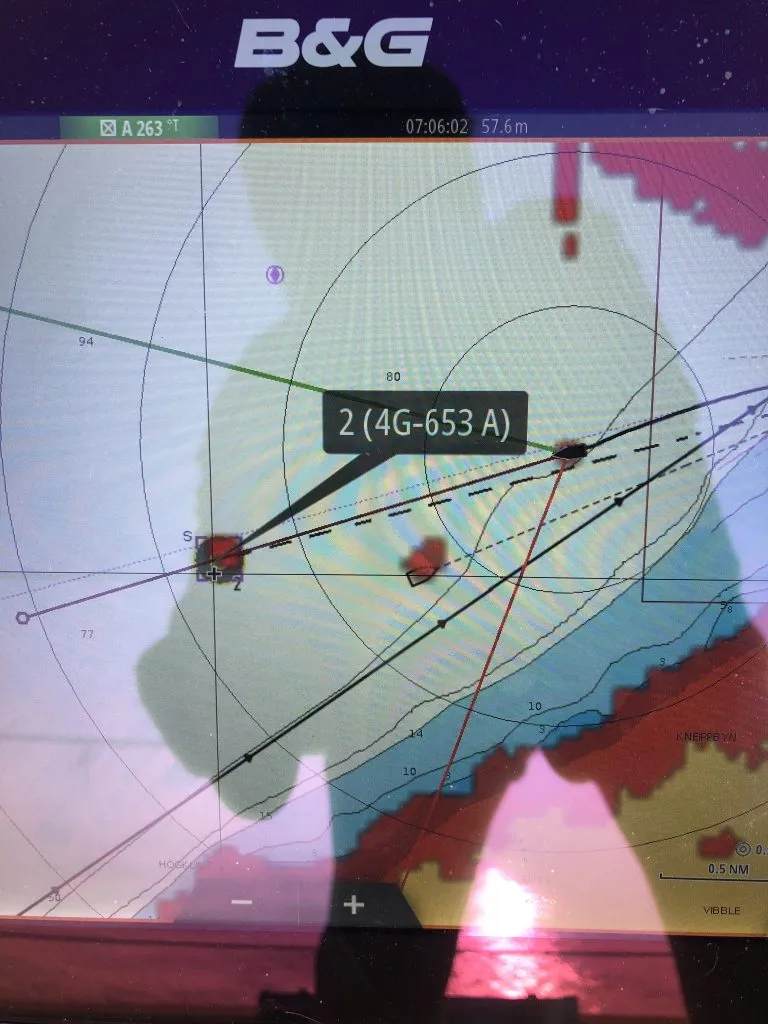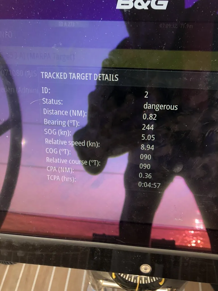 I set up the radar to keep track of the boat using B&G’s MARPA system, and it worked beautifully!