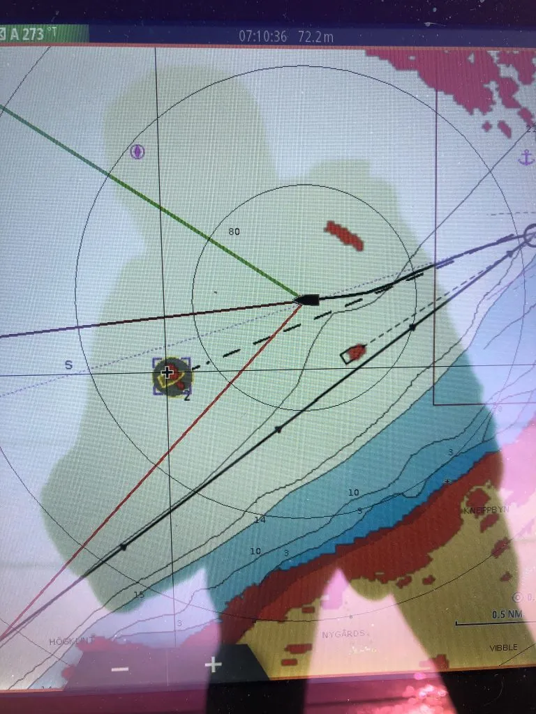 “Yes,” I told him, “no problem!”. And that was true. I had quite a lot of pure-instrument sailing miles on the log, either in fog or in pitch dark, and I had grown very comfortable in relying on the instruments alone for determining our position and course. And, obviously, the AIS transponder was great as well, to let other boats in on that same information.