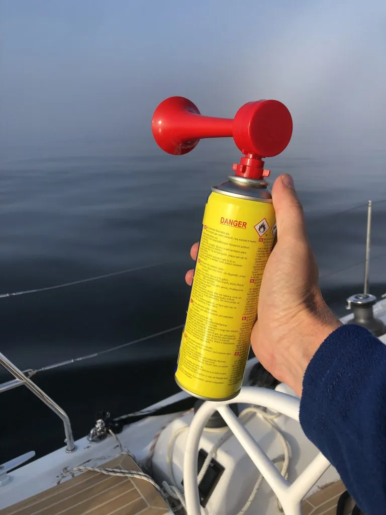 A few moments later, to my delight, I heard that they were using their fog horn. Usually, the smaller boats don’t do it (although everyone should, according to the COLREGs!), but as they did it, I went inside to get our fog horn out to reply.