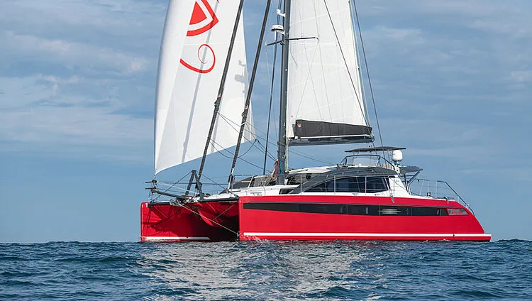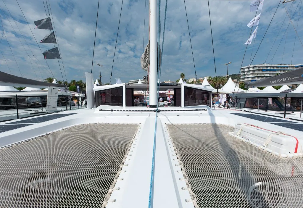 The list of performance catamarans at Cannes wasn’t very long: the ingenious and youthful Independent Catamaran IC36, the carbon rocketship O Yachts Class 6, the masterly Outremers 4E through 5X, and, last but not least, the Windelo 50.