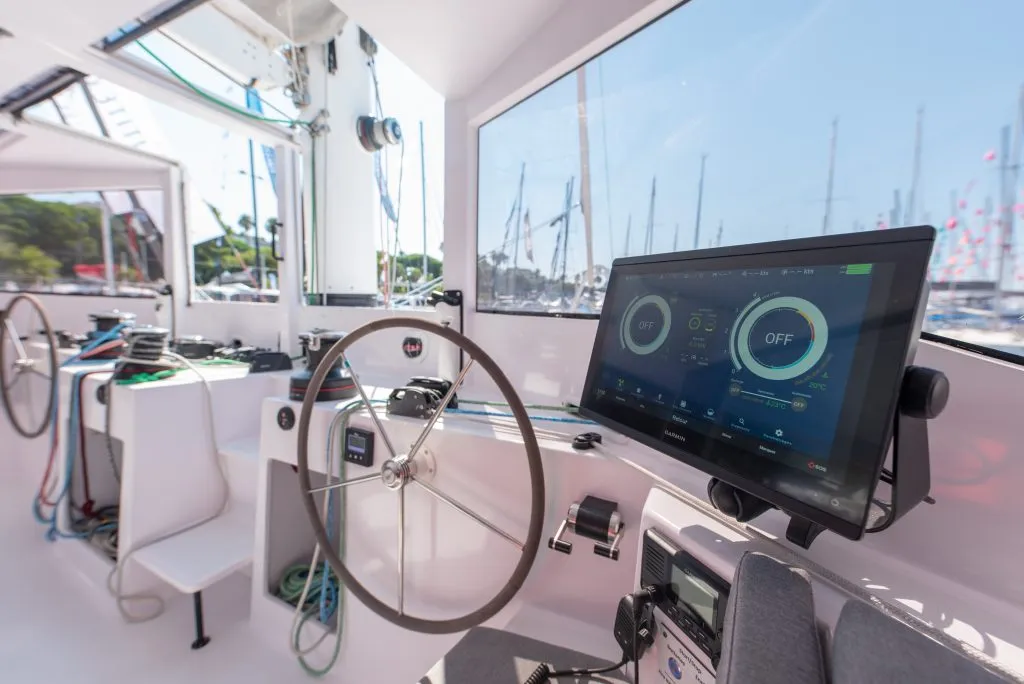 On the starboard side, you find the command station headquarters, featuring a big digital display (with, among other things, Windelo’s own controller app!), a VHF, and all the controls for operating the electric propulsion.