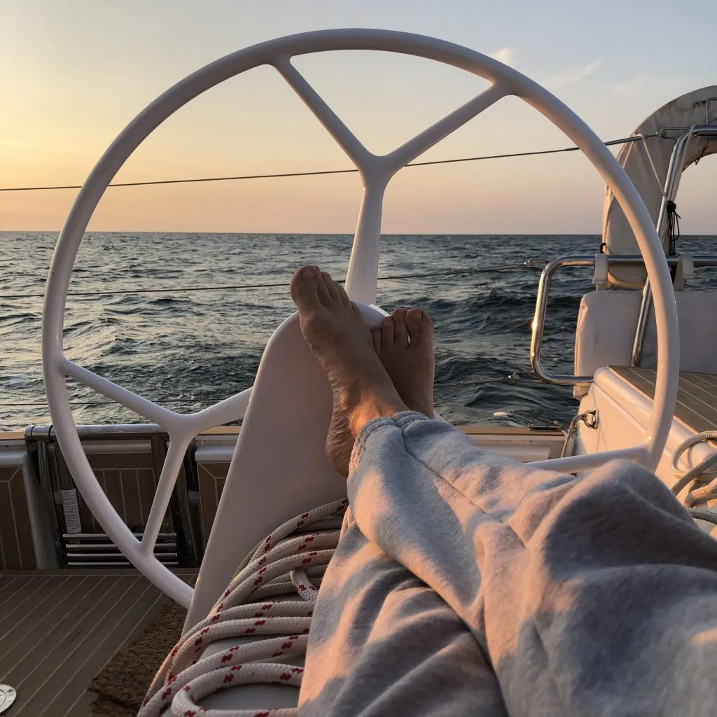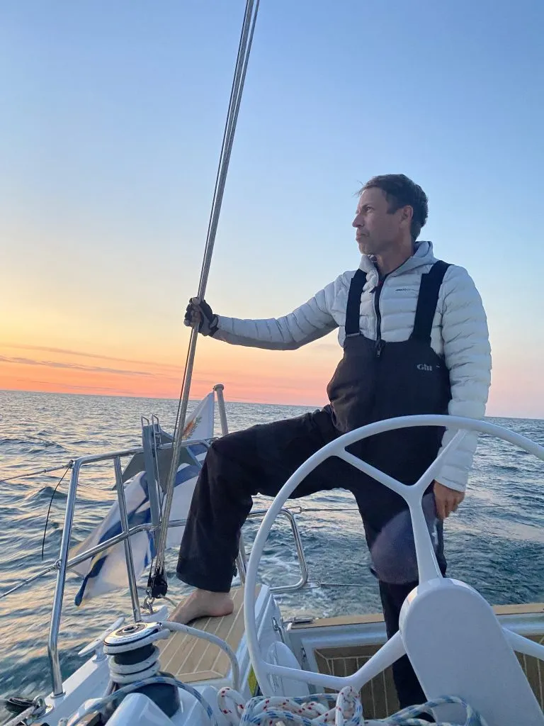 Just after sunset, with the golden hour still on, Charlotte took some hero shots of me. We thought it would be funny to get some pictures of the chiseled captain looking out over the broad ocean.