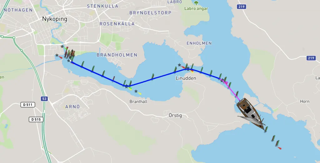 We were on the move again! After a few days in Nyköping, we were now heading back out through the (slightly) tight entrance fairway that had proved a bit challenging during our nighttime arrival. It was definitely easier with the lights on.