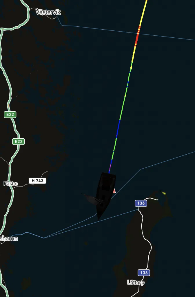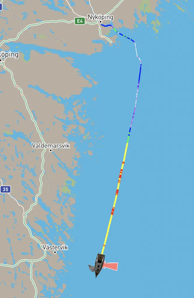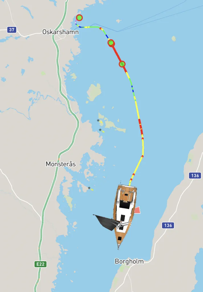 Looking at the chart plotter, though, we knew that we had just passed the northern tip of Öland. And that we were heading down south, about a third of the way from Öland to the mainland.