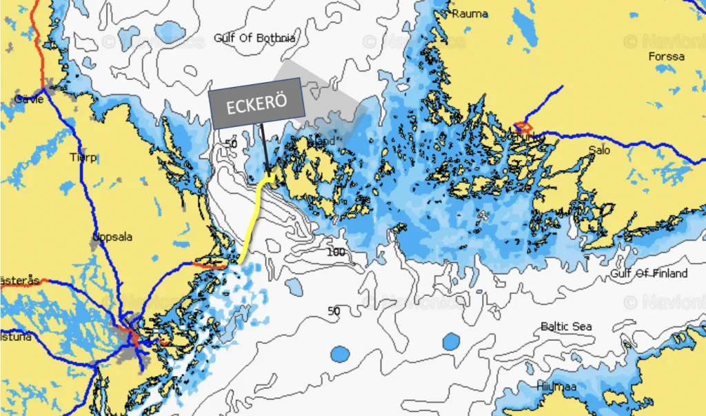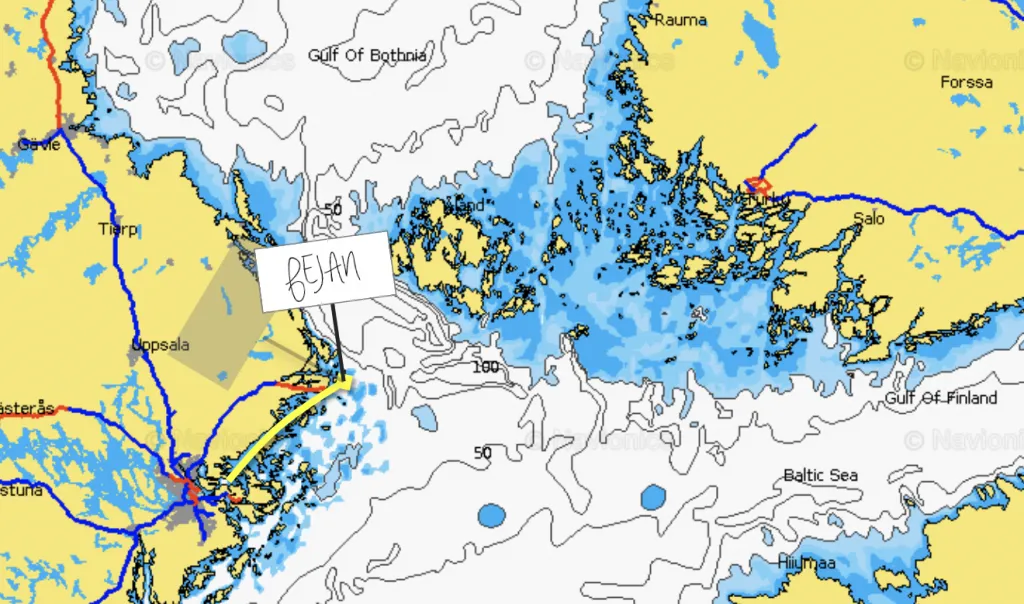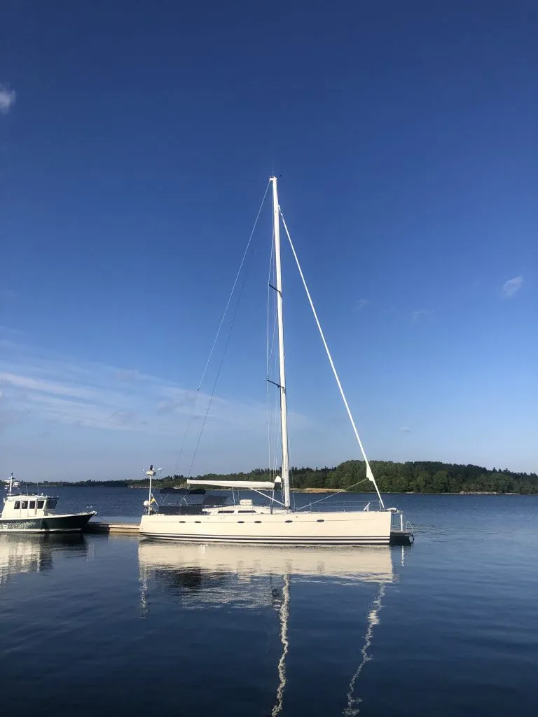 “I don’t like sailing in the night,” he said, so we had split the journey into two legs. First, we’d set out from Stockholm and sail to the westernmost edge of the Sea of Åland to spend the night there. Then, on the second day, we’d cross over the border to Finland (Åland) and drop the seller off on Eckerö, from where he’d be able to catch a ferry back home to Stockholm. (And we’d be left there alone with the boat, without very specific plans of how to get it all the way home!)