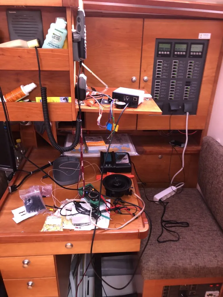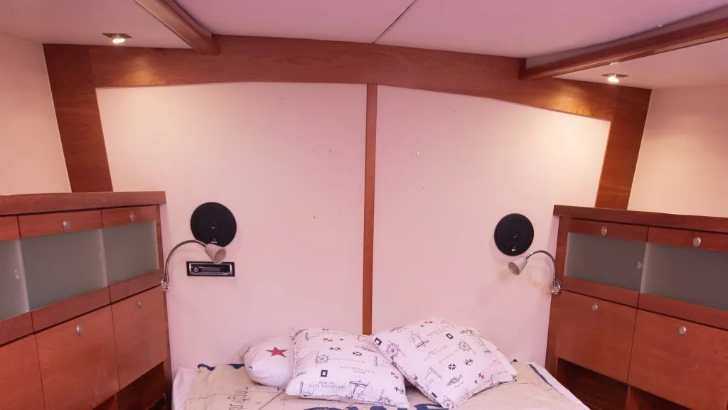 The system in the master cabin wasn’t that bad and it did work without the inverter or shore power. It wasn’t, however, connected to the cockpit speakers, so almost entirely useless for digging music while being outside.
