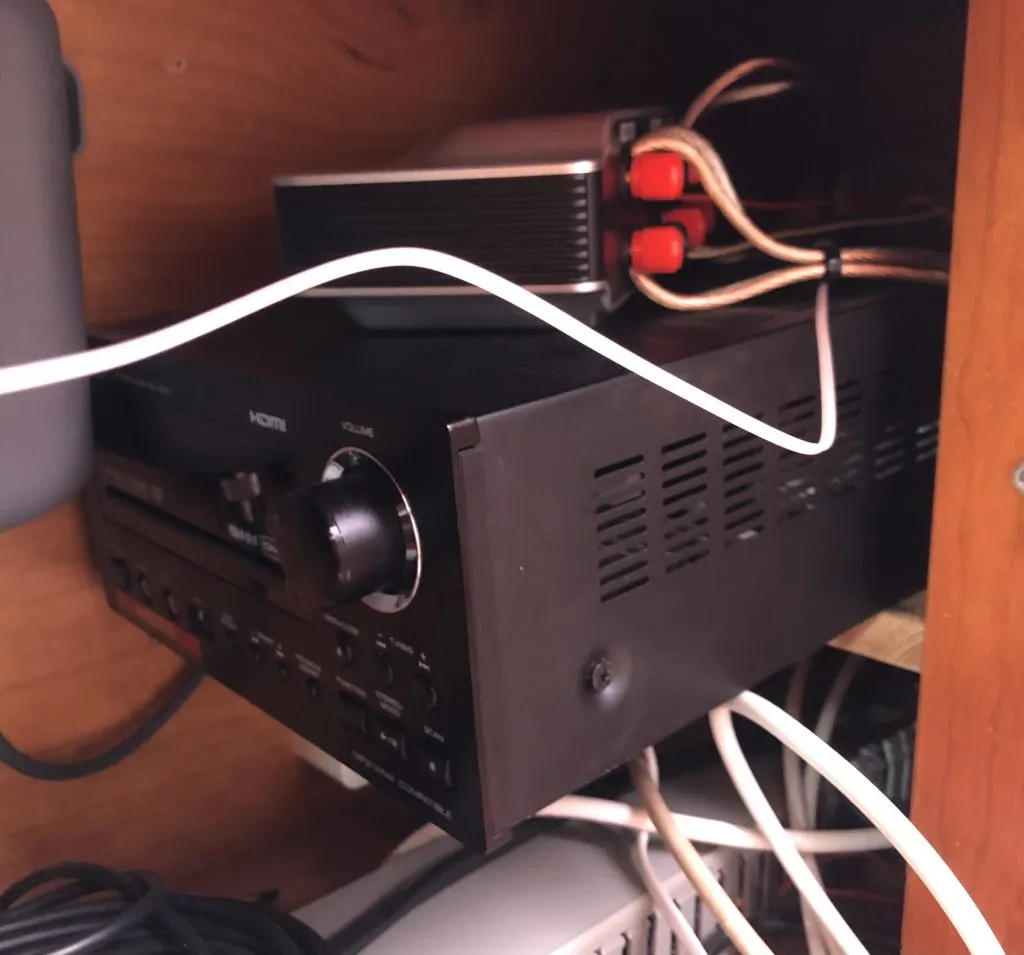 I ran the new speaker cables, and a new power cable, and brought it all together into the new headless stereo device.