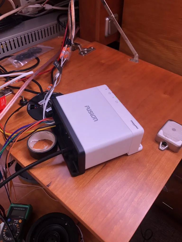 There weren’t any compasses in the saloon (at least as far as I knew), so I went back to the Fusion speakers again.