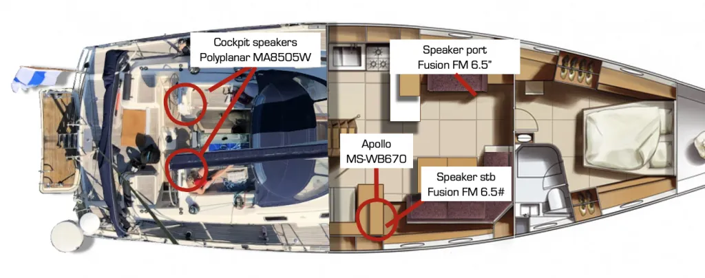 My first thought was to get Garmin Fusion cockpit speakers as well (as Hanse does, and they look really nice!), but that wasn’t quite as unproblematic as I had thought it would be.