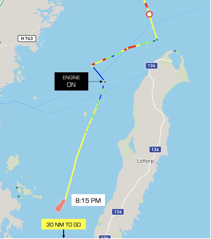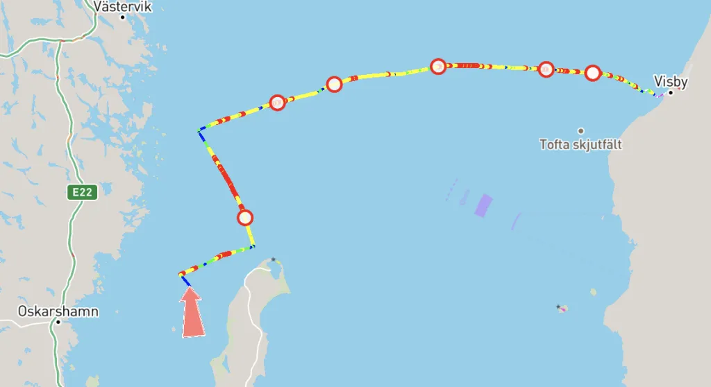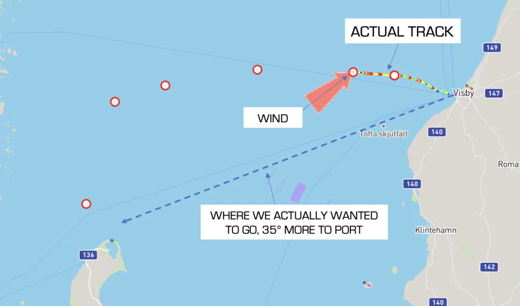 About six hours later we were closing in on mainland Sweden and ready to make our first tack.