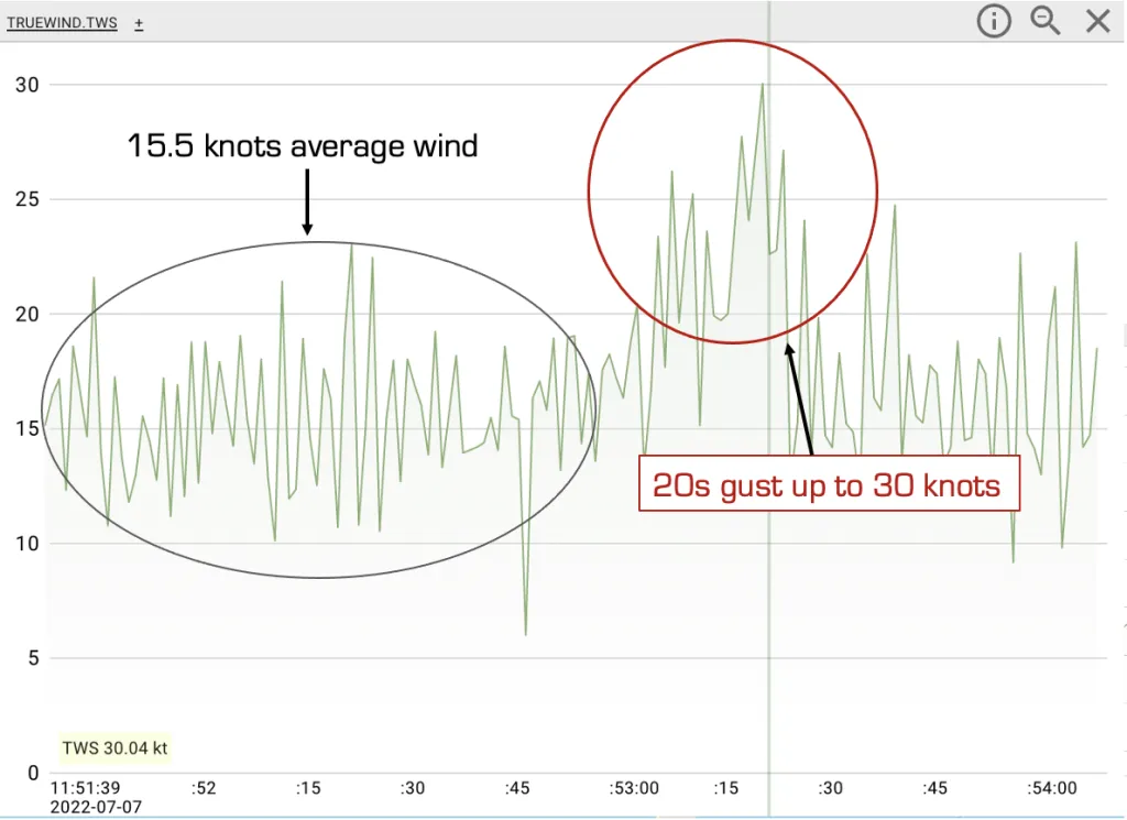 The wind had kept with us in the fifteen-twenty knot range, but before our first tack, and before letting go of us, it gave us a proper and firm send off handshake.