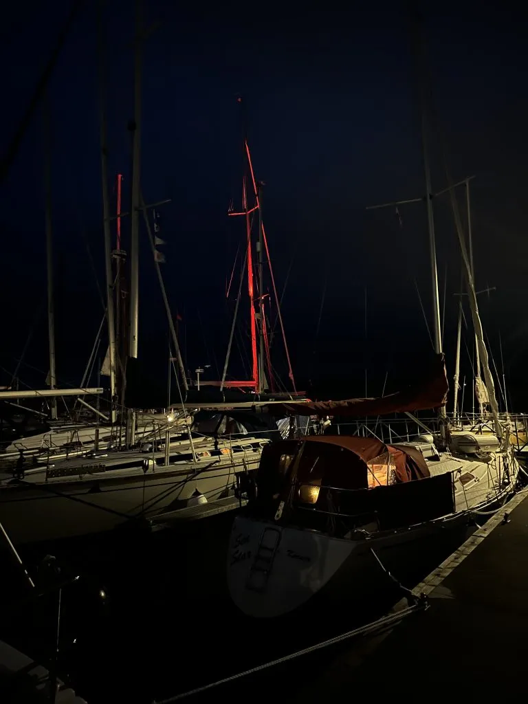 So, a deep bow and thank you to Kiko at DB Marina for all the maintenance work you did last winter. And the same to Björn for meticulously installing all our new navigation systems (and the mast lights! ❤️) Thank you both (and your crew) for helping us get there and back again safely!