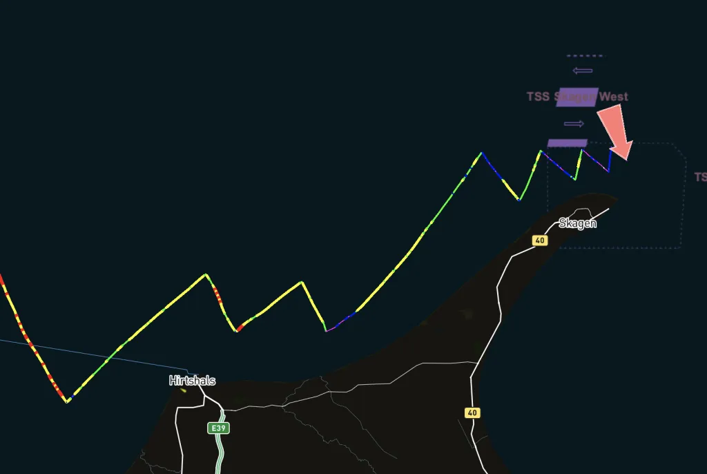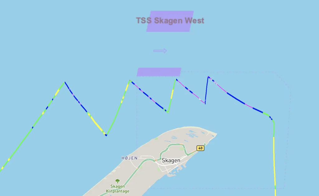 Getting around the Skagen, while avoiding the traffic separation scheme, against the wind, and against the tide, with just the jib— quite excruciating!