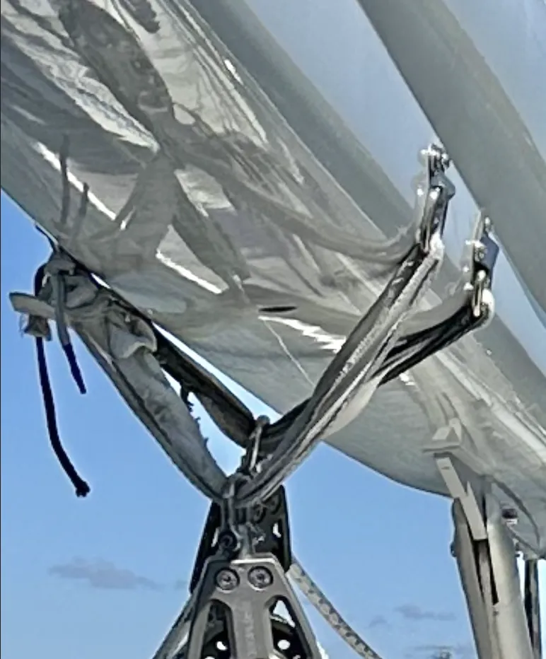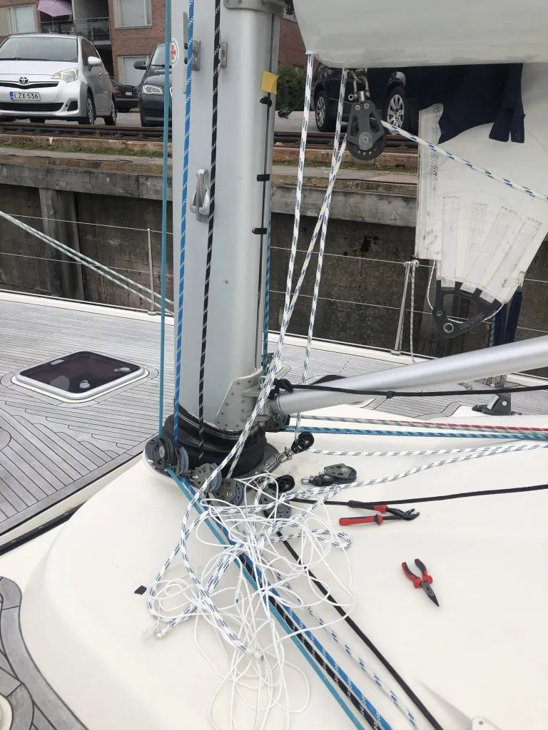 - The furlerboom endless control line (used to roll the mainsail in/out) was almost broken at the endless connection point.